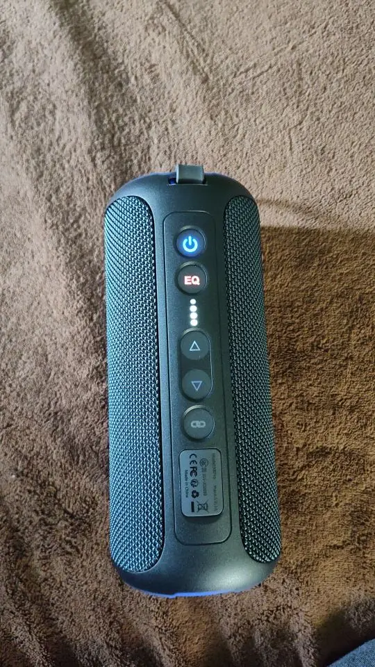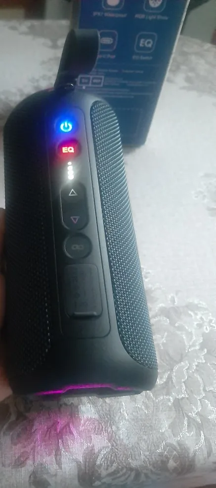 El altavoz es excelente, todo funciona a la perfección. No lo he metido en agua, así que no puedo opinar sobre su impermeabilidad. No verifiqué el tiempo de funcionamiento a volumen máximo, pero a 1/3 dura 20 horas. En general, lo recomiendo.