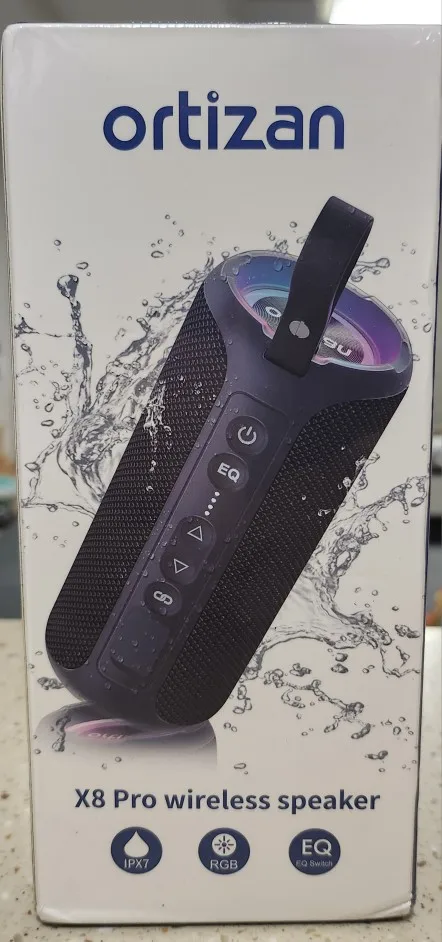 Este es un altavoz bastante bueno. Realmente me gusta la base profunda que tiene con sonidos ricos. Por $30, tiene un valor realmente excelente y lo recomendaría. Viene con un cable auxiliar de 3,5 mm de aproximadamente 6 pulgadas y viene con un cable USB C para cargar. Dice que puede durar 30 horas, pero con un uso rápido diría que parece que me duraría entre 8 y 10 horas de uso constante a volúmenes altos. Hice mi pedido y llegó en unos 10 días. En general, me impresiona con mi altavoz X8 Pro.