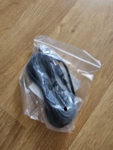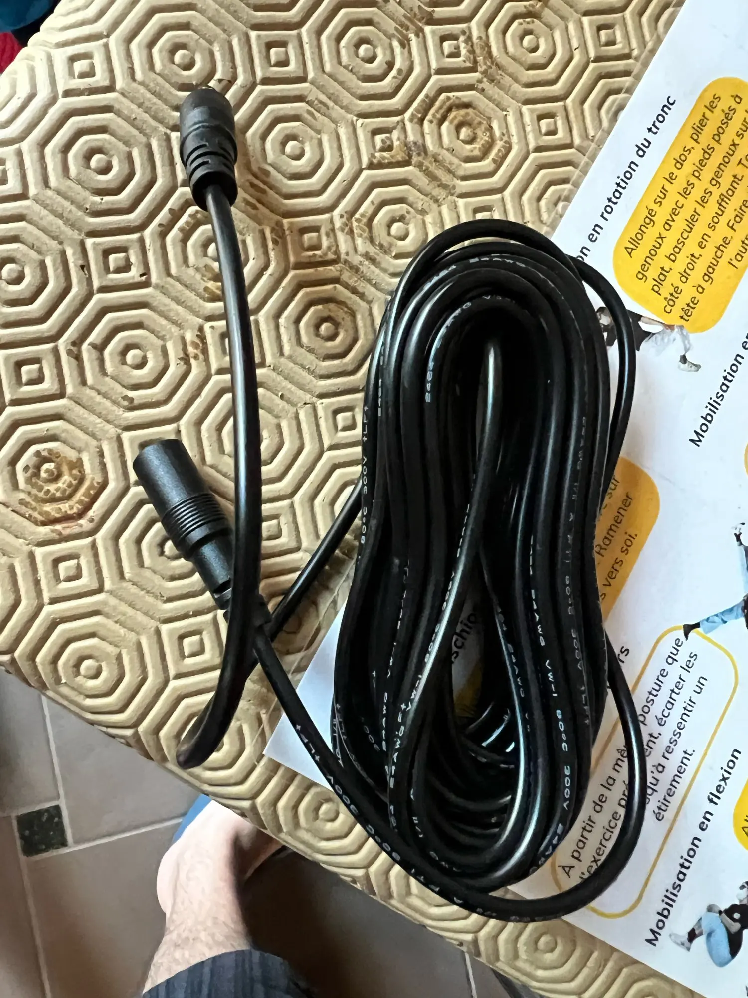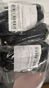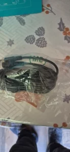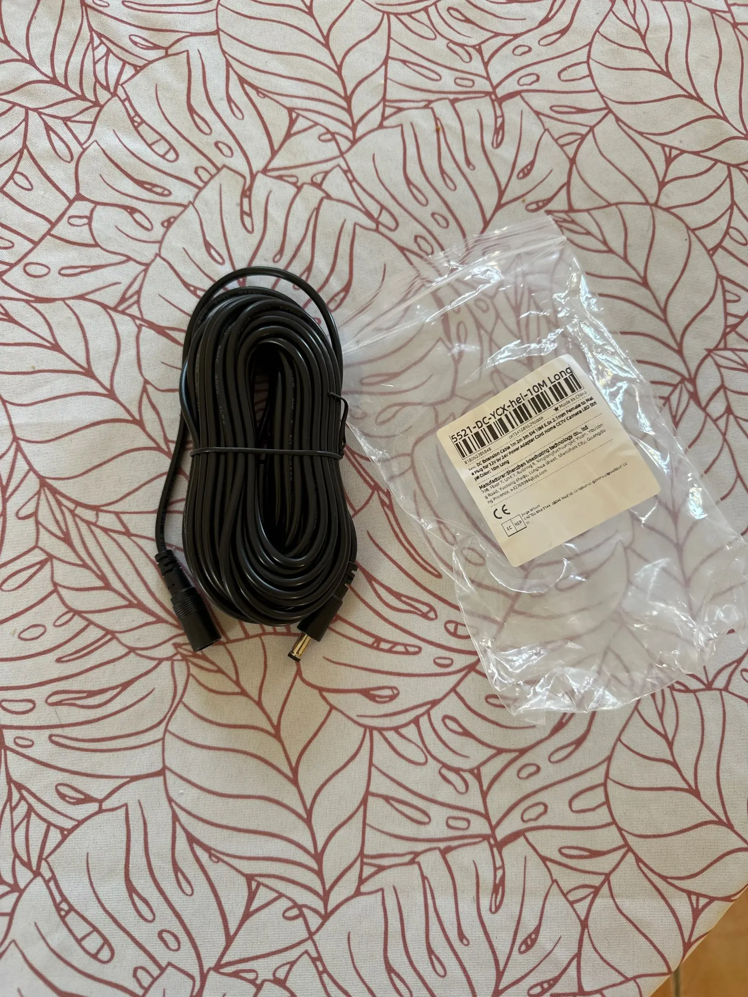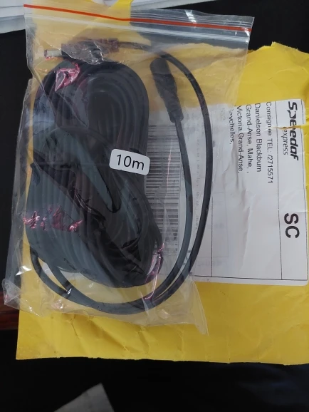 Llegó un cable de muy buena calidad, muy bien empaquetado en una bolsa pequeña. A pesar de que el cable tiene una longitud de 10 metros, parece que fue empaquetado por una máquina y parece ser bastante duradero. He comprobado las entradas de la cámara y el adaptador de enchufe, y el cable funciona perfectamente.
