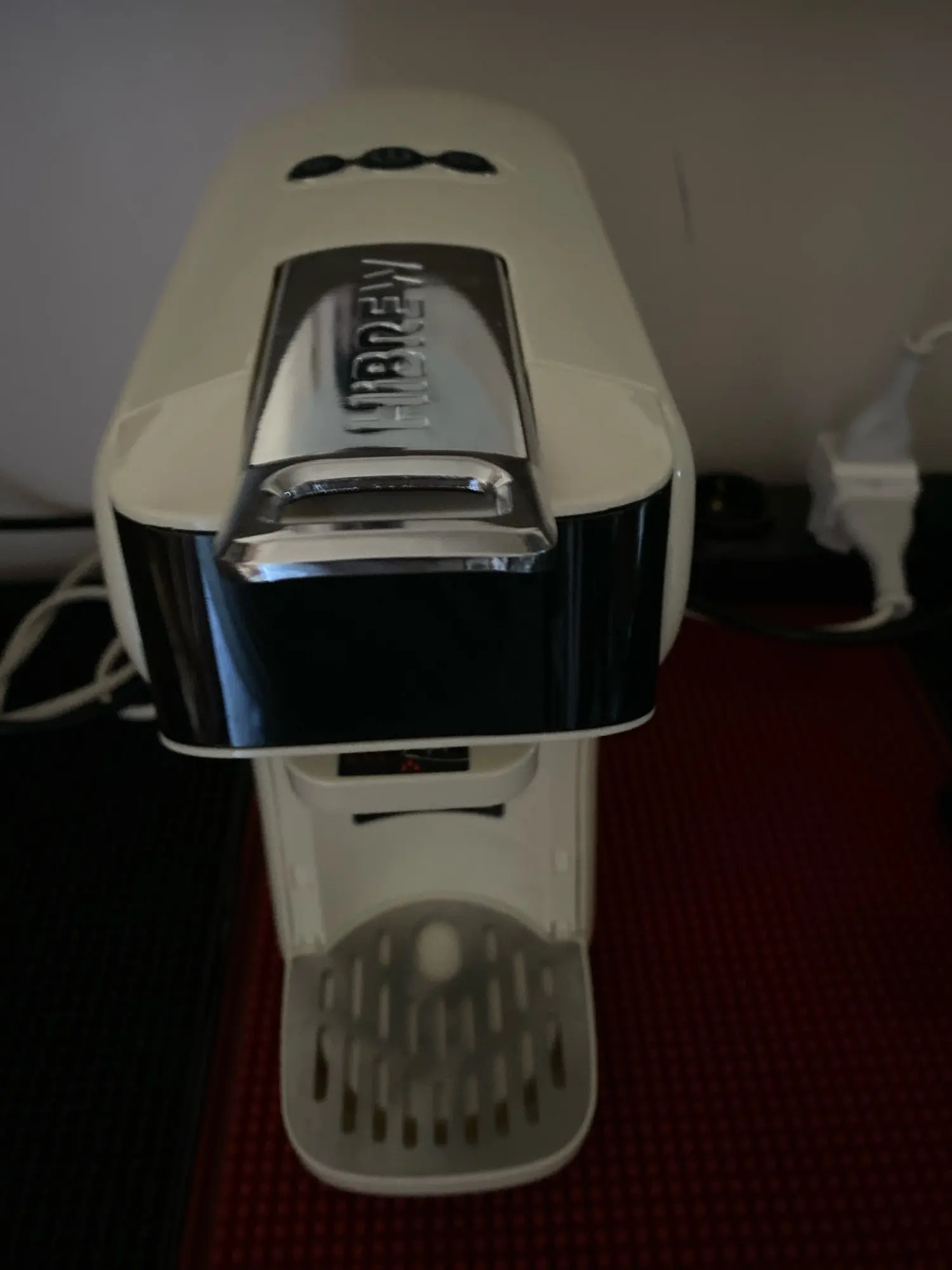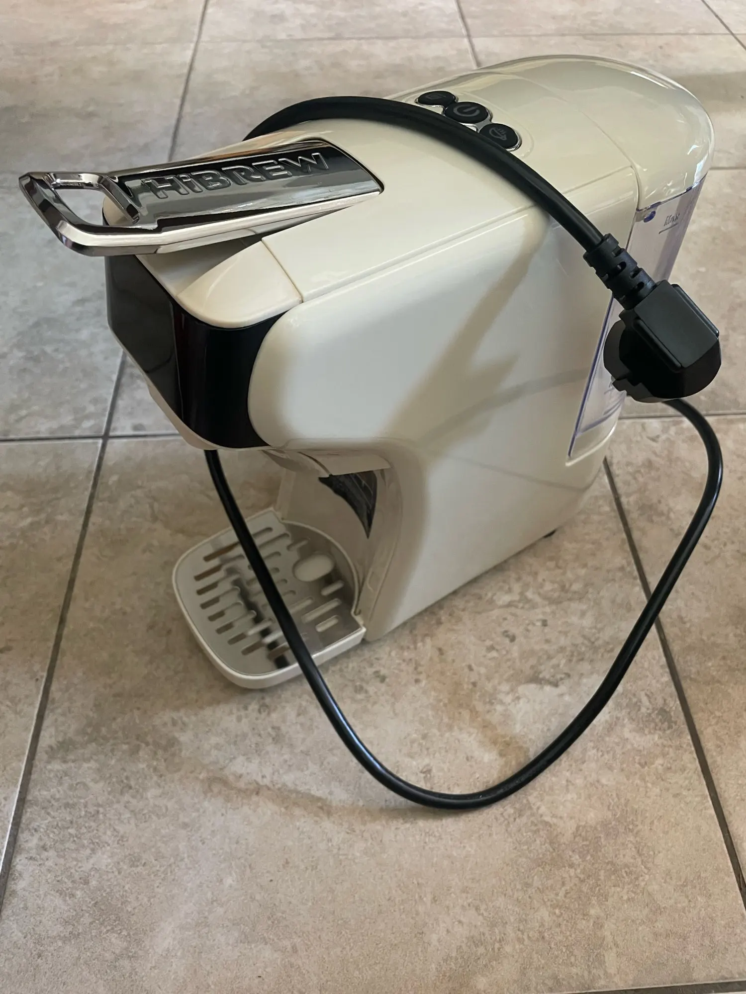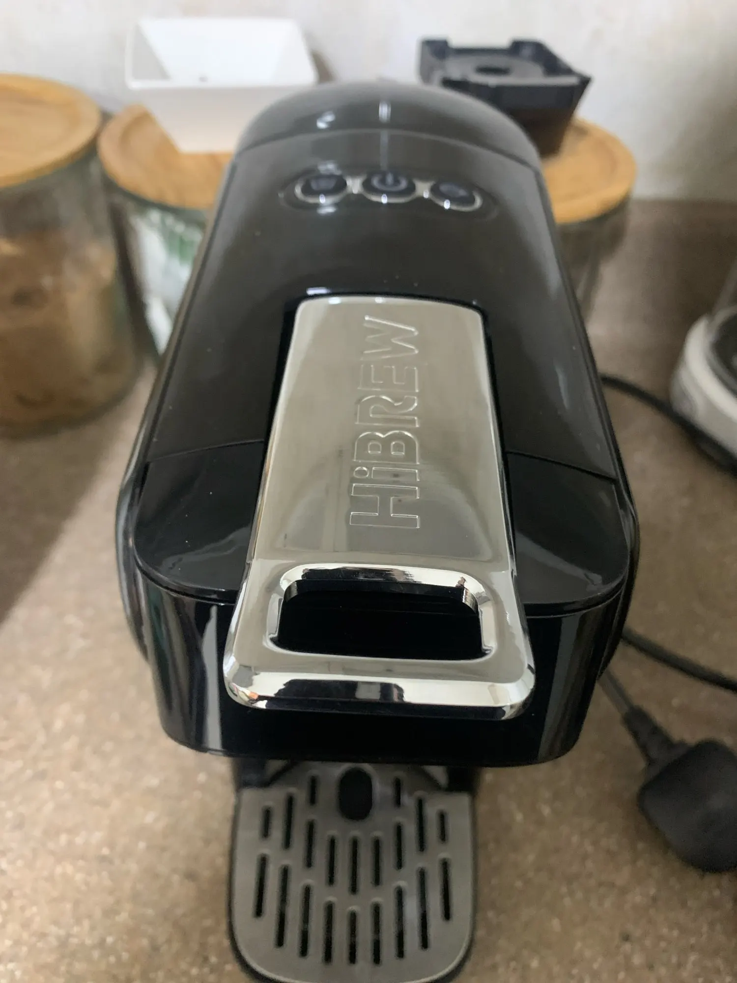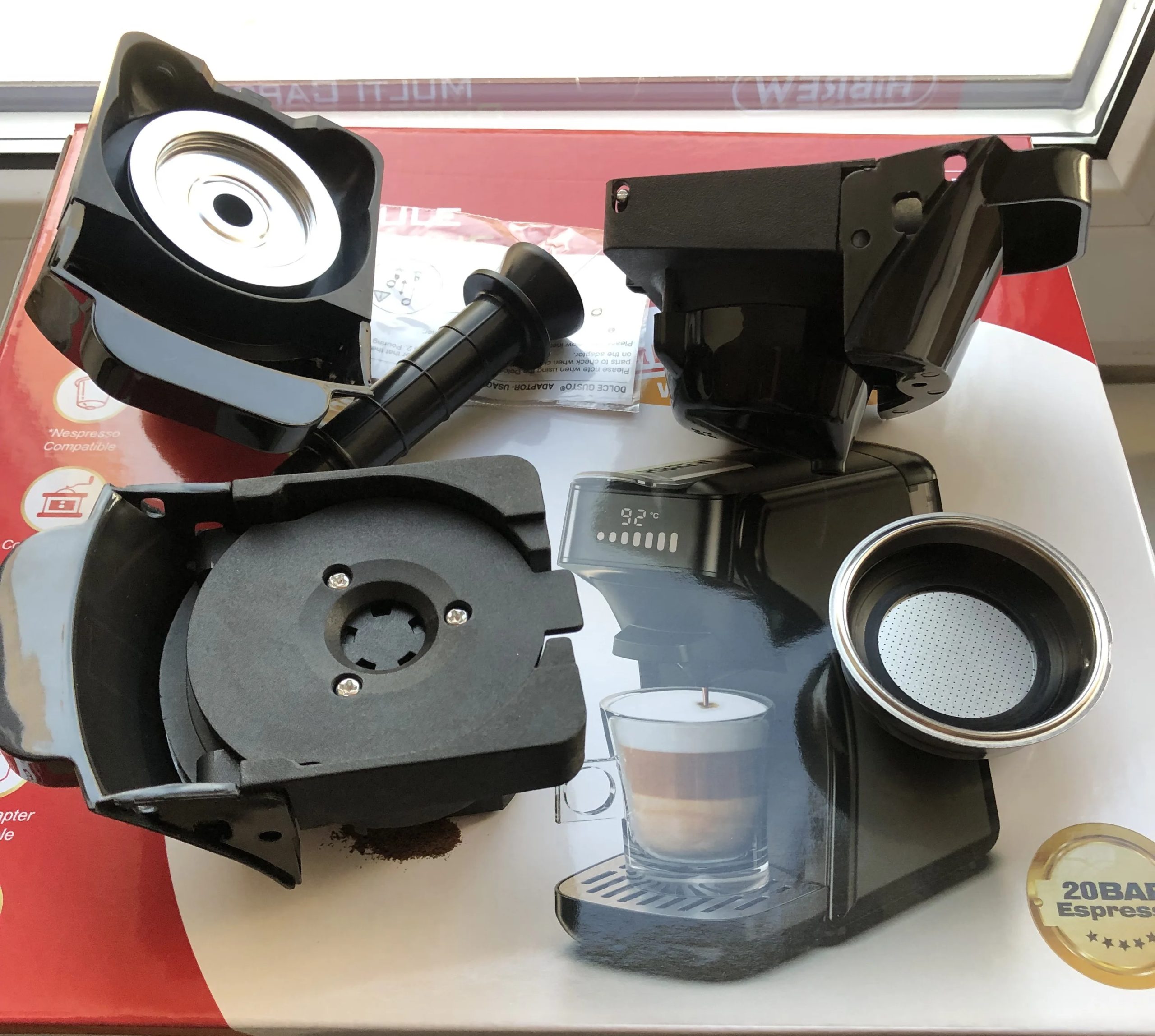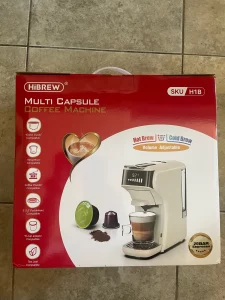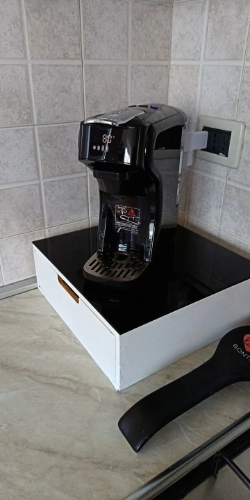 Gran diseño. Muy práctico y versátil porque se puede hacer el café en un dosette (nespresso, dolce goaste) en un café y el té en un dosette o a granel. Este es mi segundo modelo de cafetera multidosette Hibtew y estoy satisfecho y los recomiendo.