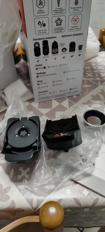 Realmente me gustó el dispositivo. Tiene muchos boquetes intercambiables para diferentes tipos de cápsulas. También funciona con tierra. Hice té en él, resultó bien – aunque no lo esperaba. Calienta y prepara el café rápidamente. Llegó rápidamente.