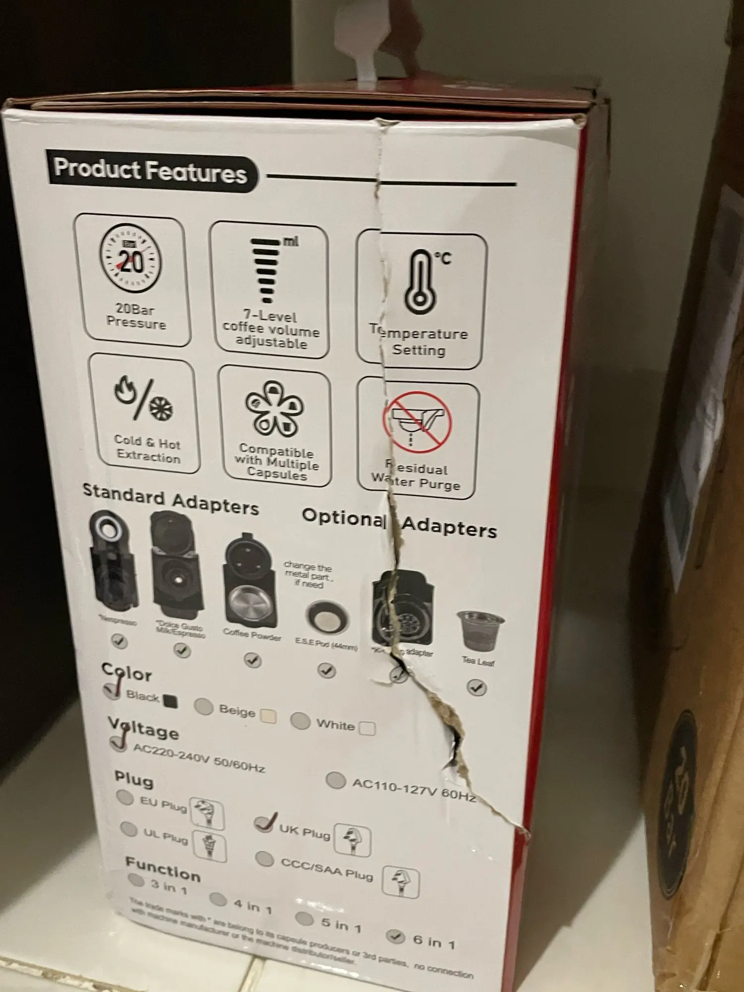 recibido bien embalado Recorrida las adjuntas me falta la adjunta de hoja de té. Le envié un mensaje a la empresa y todavía no me han respondido. Aparte de eso, he usado Nespresso y Kerrigan y estoy muy contento y su tamaño es increíble para mi RV.