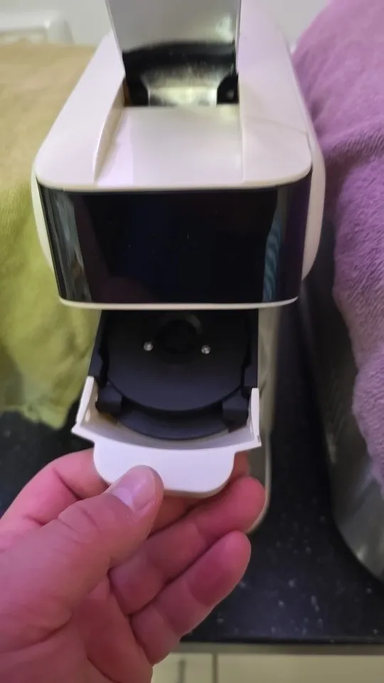 La máquina es muy bonita y pequeña en tamaño, pero noto que con un movimiento fuerte, la cesta comprimida sale. No sé si esto es normal o no. La temperatura del café es agradable y caliente cuando baja. 👌 👍