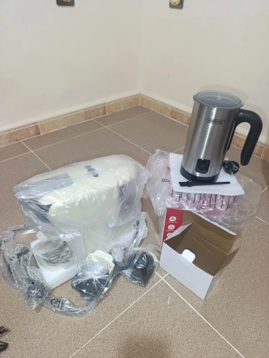 La máquina de café estaba bien empaquetada📦Y entregado rápidamente. Seguí las instrucciones. Y True mi primera taza de café, y aquí está el resultado. Una máquina impresionante con precio asequible. El Espumador de leche era más que excelente. Recomiendo el negro M1A👌
