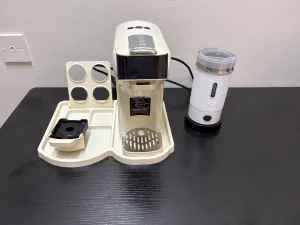 Recomiendo este dispositivo para café. Escribo esta reseña después de haber probado la máquina más de tres veces, y funciona perfectamente y muy bien. Es una máquina revolucionaria que te permite usar todo tipo de cápsulas de cualquier marca, sin estar limitado a una sola máquina o marca de cápsulas.