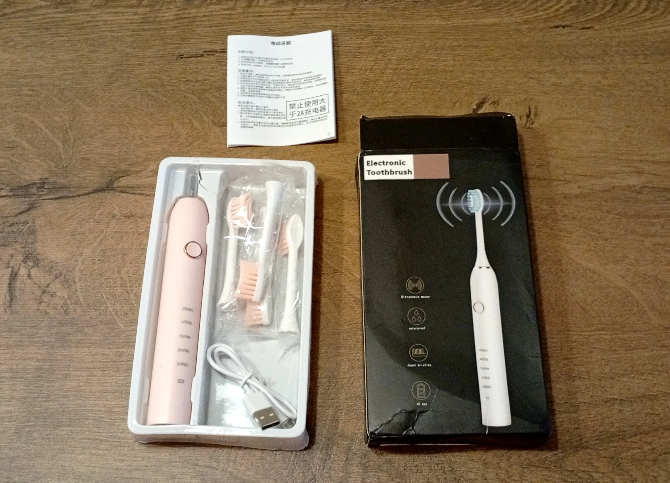 El cepillo es bonito. Todos los modos funcionan. Entrega a tiempo.
