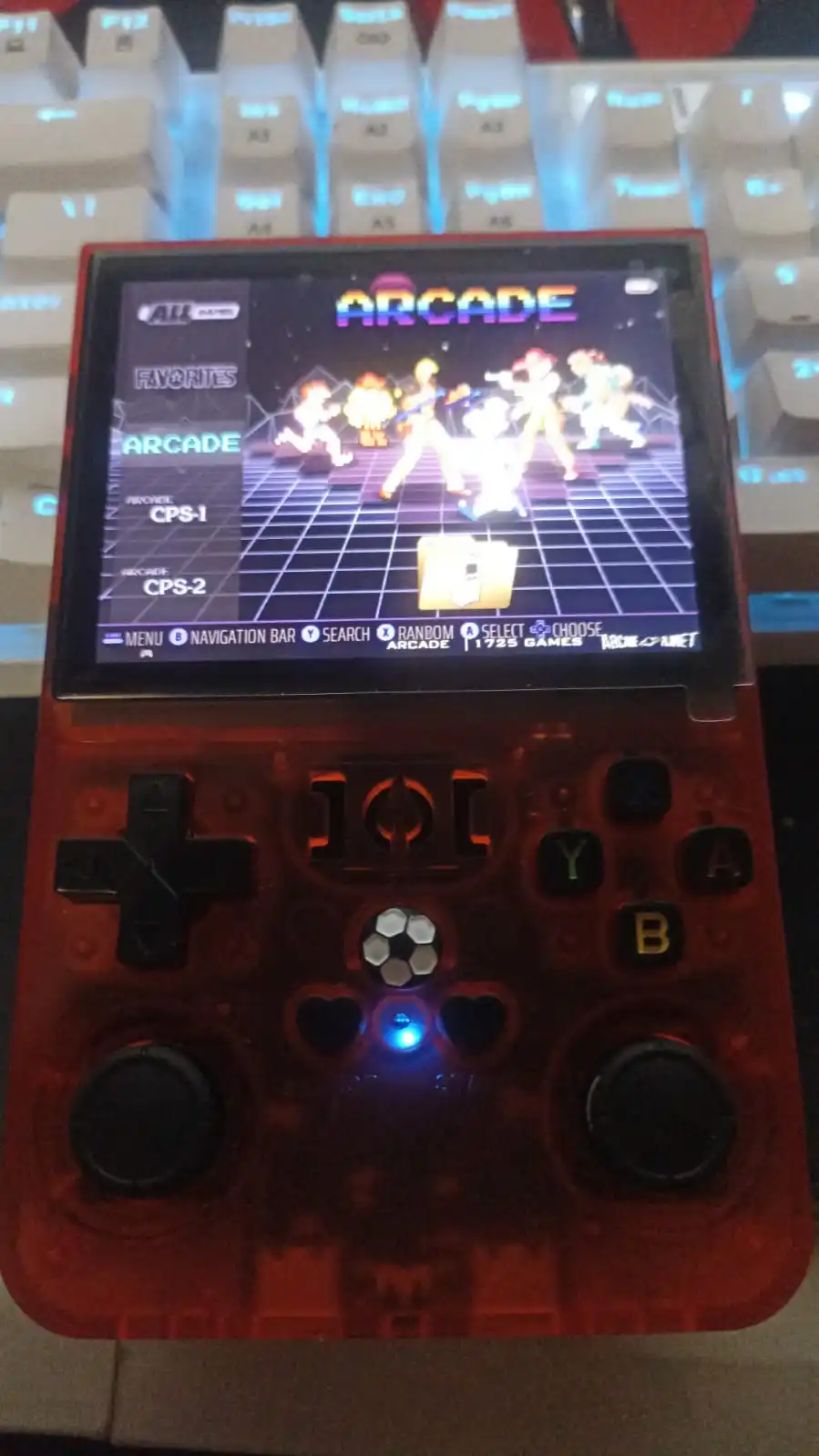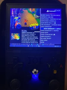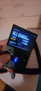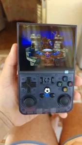 Más allá de las expectativas a este precio, más de 22000 juegos disponibles, aunque algunos se repitan para diferentes sistemas o versiones. El software emuelec (casi igual que batocera) cumple su función. El surtido es bastante diverso con varias sorpresas que no esperaba, pero también muchas ausencias que se pueden parcialmente rellenar a través de un segundo micro SD en el lado opuesto al ya proporcionado. El Nintendo 64 está faltando, necesitamos probar si presenta algún problema o no, pero el Dreamcast con 17 juegos, incluyendo RE Code Veronica que funciona perfectamente, está presente. Después de 30 minutos de juego, la batería ha disminuido aproximadamente un 15%, pero necesitamos ver a largo plazo si dura. La ergonomía no es la mejor; las manos grandes se cansan fácilmente.