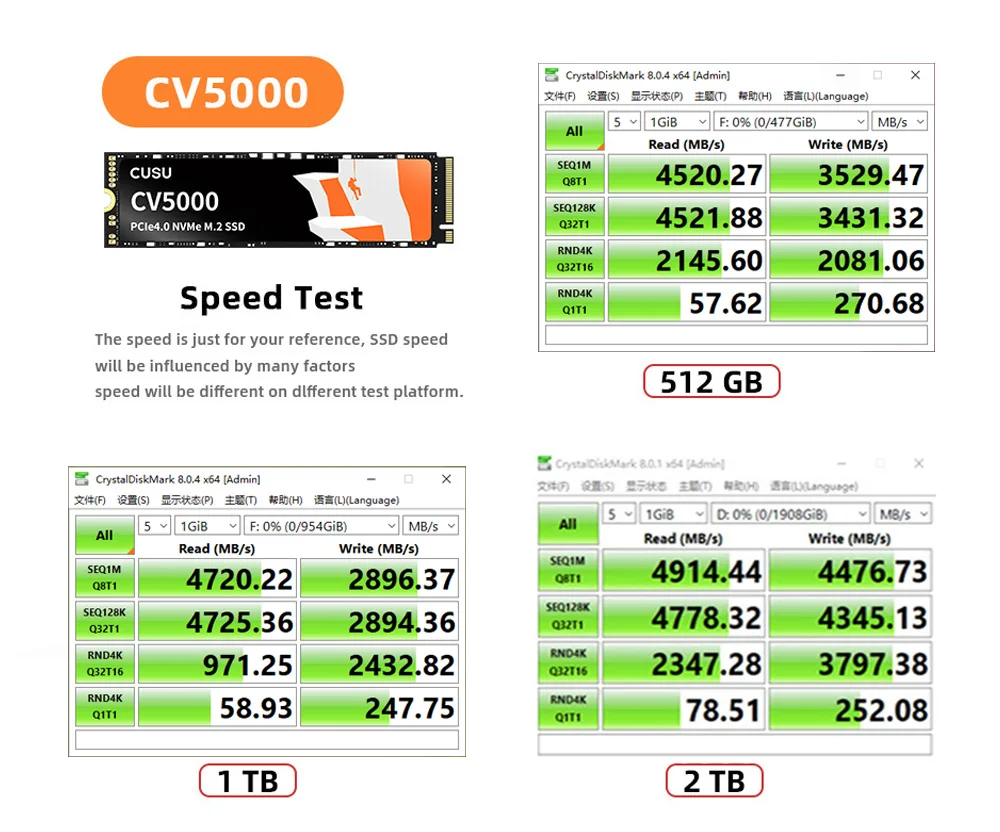 CUSU SSD NVMe M.2 1TB/2TB/4TB PCIe 4.0 ultrarrápido