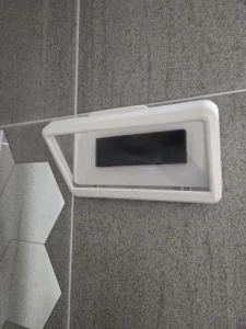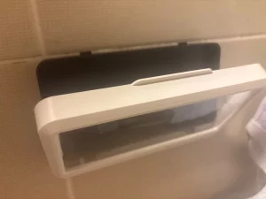 Con un diseño moderno, compacto y discreto, se adapta perfectamente al entorno de tu baño. Disponible en varios colores para combinar con tu estilo. Además, su sistema de apertura tipo cajón permite colocar y retirar tu teléfono en segundos.