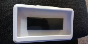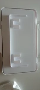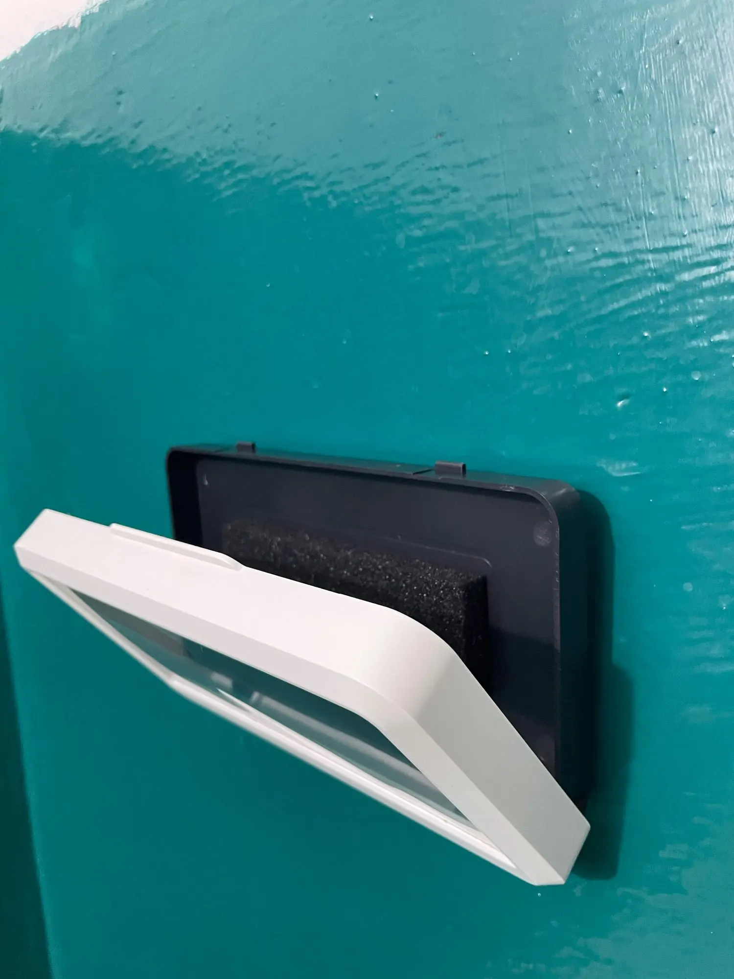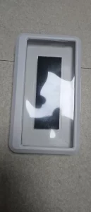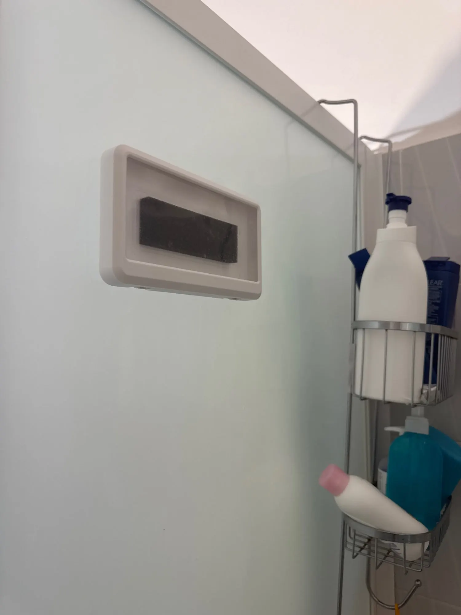 fácil de usar y una vez en la pared está *pegado* allí. Membrana lo suficientemente delgada para usar fácilmente el teléfono, pero lo suficientemente gruesa como para que no reaccione al agua que contiene. tienes que luchar para abrirlo, pero supongo que simplemente significa que está bien sellado, lol
