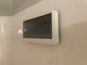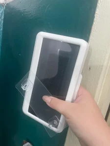 Tiene ganchos para colgar, puedes interactuar con tu teléfono a través de la delgada pantalla impermeable.