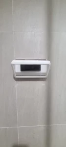 Incluye un soporte de montaje que se fija fácilmente a superficies lisas como azulejos, espejos o vidrio, sin necesidad de herramientas ni perforaciones. Su adhesivo de alta resistencia garantiza una sujeción firme y estable incluso en ambientes húmedos.