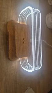 Estéticamente muy agradable, hace una luz decente, no he probado el cargador inalámbrico todavía; La lámpara es muy pequeña, para dar la idea de que el teléfono no se pone en el lado largo