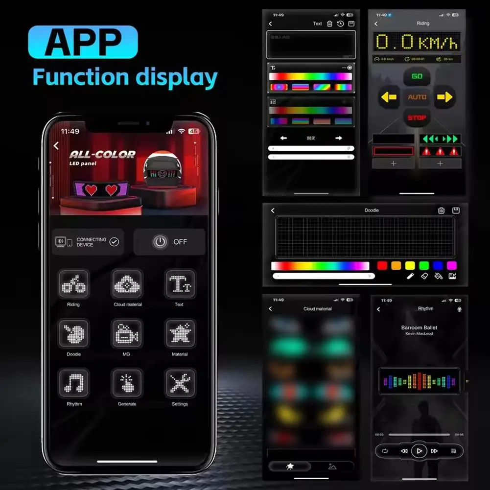 Esta pantalla LED programable para casco está diseñada para que otros conductores te vean claramente desde lejos, reduciendo el riesgo de accidentes y aumentando tu tranquilidad en cada trayecto. Gracias a su iluminación RGB de alta intensidad, destacas incluso en carreteras oscuras, lluvia o tráfico urbano denso 🚦.