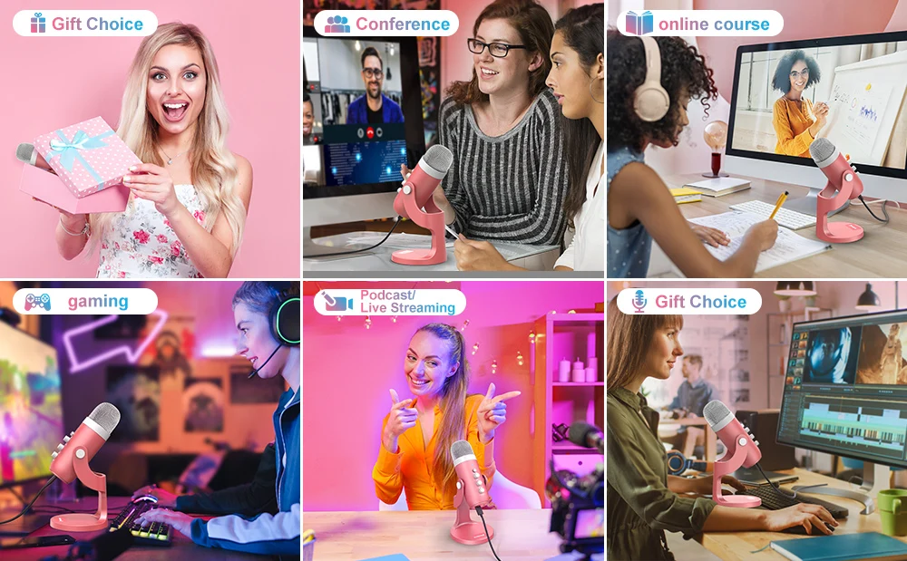 Si eres creador/a de contenido, streamer o simplemente quieres un audio impecable para tus reuniones o grabaciones, este micrófono USB rosa es la herramienta perfecta. Su facilidad de uso, calidad de sonido profesional y elegante diseño lo hacen destacar en cualquier configuración.