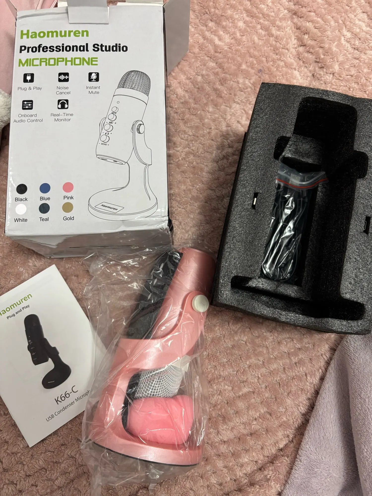 • 1x Micrófono USB de condensador color rosa