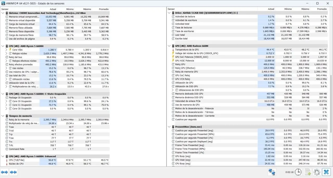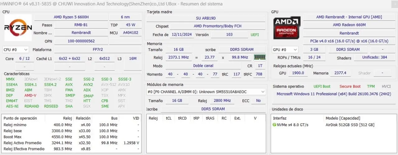 ✅ AMD Ryzen 5 6600H de 6 núcleos y 12 hilos