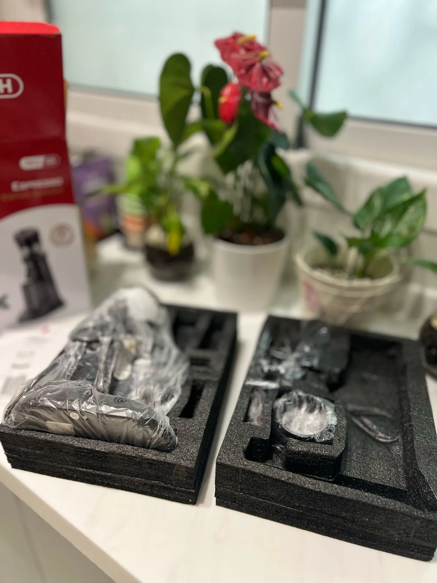 La máquina es hermosa, ligera y muy práctica. Se utiliza para hacer café turco, espresso, V60 y café frío. Todos los grados de molienda están disponibles con excelente calidad, y no hay ningún ruido molesto durante el molinado. Lo recomiendo para uso personal y doméstico. Llegó en 3 días. ❤️