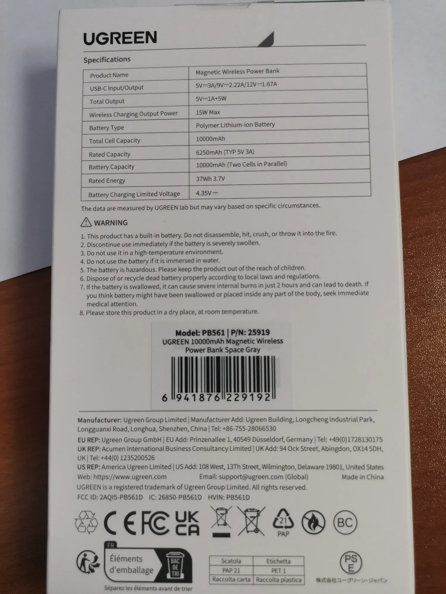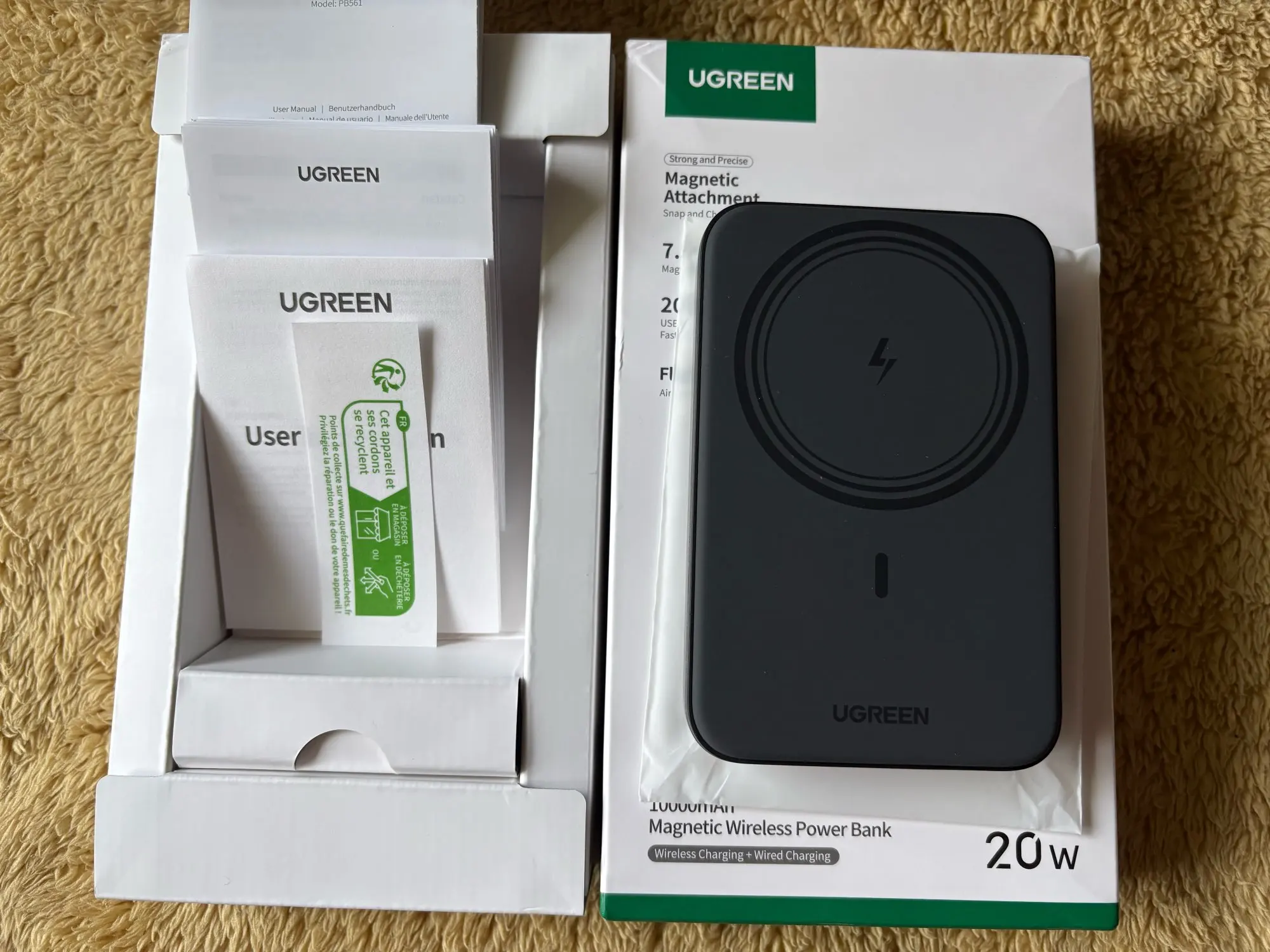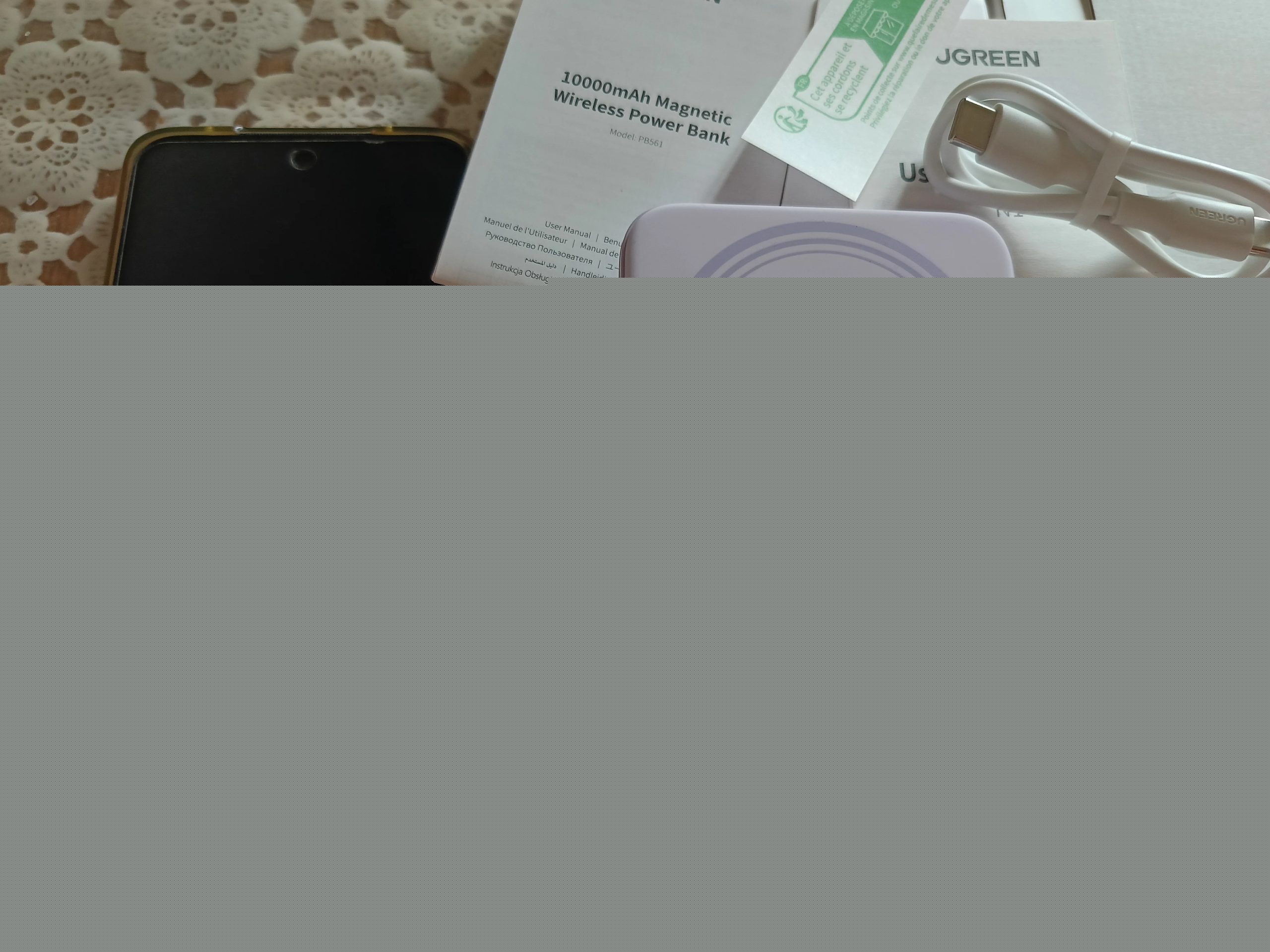 Excelente powerbank funciona muy bien la calidad de los materiales son excelentes. La caja contiene la powerbank, cable de tipo c a tipo c, manuales, póliza de garantía. Carga los dispositivos a un máximo de 20w (por cable), una carga rápida siempre y cuando la acepte el teléfono. La powerbank tarda en cargar en aproximadamente 3 horas desde el 0% al 100%. Y puede cargar hasta 2 veces el mismo celular. O puede cargar 2 celulares distintos. Sin duda es una excelente opción la UGREEN 10,000 mah MAGNETIC WIRELESS POWERBANK 20W