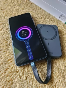 Lejos, de las mejores compras que he hecho este año, funciona perfectamente, buenos materiales, el MagSafe agarra muy bien, siempre que tengas MagSafe en tu iPhone o que tengas una funda con MagSafe. La carga qi2 es muy rápida, y me carga aproximadamente como 3 veces el celular. Gracias ugreen!