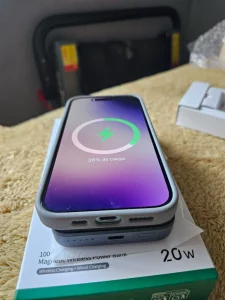 Llegó en menos de 1 mes. Carga rápida (vía cable) de un S25 ultra. A través de MagSafe también es perfecto, el imán adhiere al 8/10. ¡Recomendado!