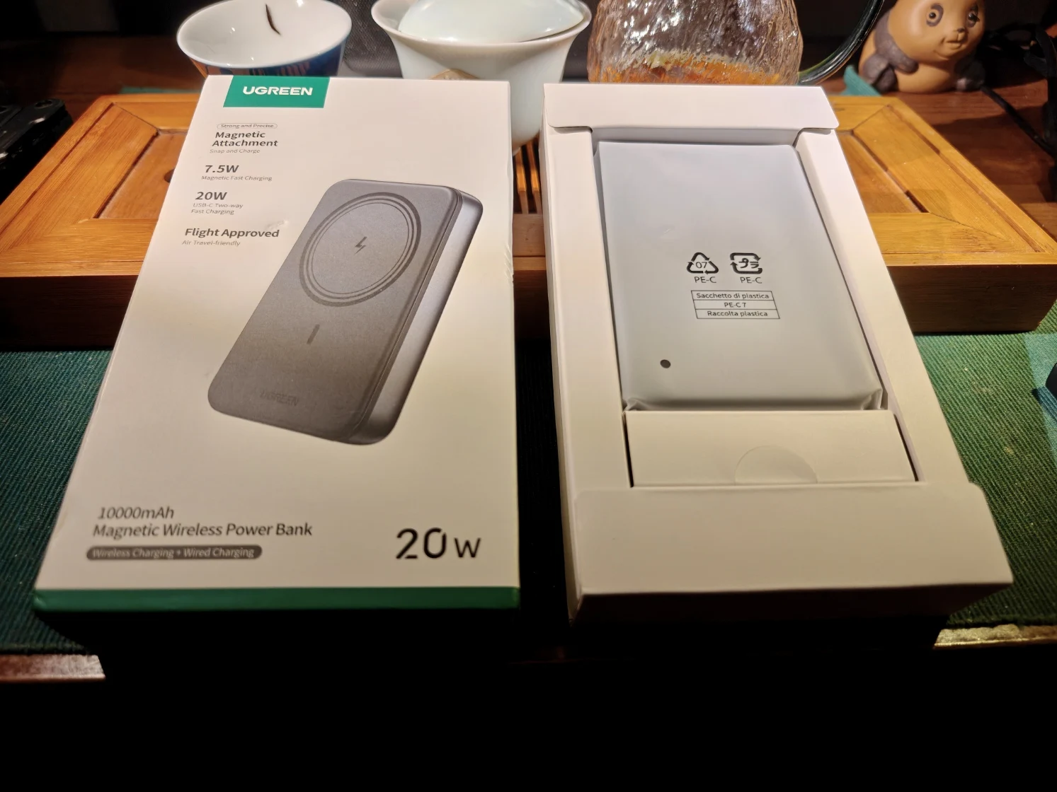 Me quedo con el segundo, el primero fue tomado por la chica y no lo quiere soltar. Enviaron un gris oscuro metálico como se ordenó, el empaque en perfectas condiciones, estaba cargado al 50%, pesa 220 gramos. Durante viajes, funcionó de maravilla; siempre se pudieron mantener cargados dos o tres smartphones y auriculares durante todo el día. La carga inalámbrica funciona perfectamente para smartphones Samsung 22 y Apple 12 en fundas normales. En términos de relación precio/calidad, esta es la mejor oferta en el mercado, en mi opinión; la compré durante una promoción a principios de verano por 1.200. Ahora con un cupón de 1.8, vale la pena, hecho impecablemente.