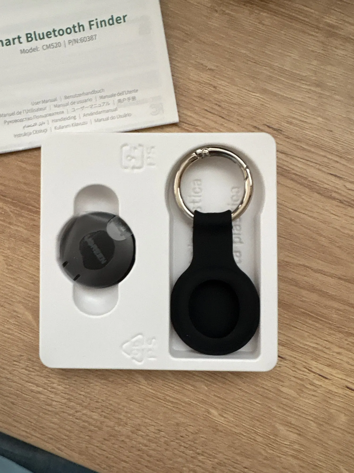 La etiqueta inteligente fue fácil de configurar con el iPhone y viene con un práctico llavero de silicona.