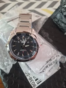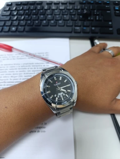 Hermoso reloj , se siente pesado por lo cual quiero pensar que tiene buena calidad , pensé que el color negro iba a ser más negro y no un poco claro , fuera de eso el reloj es un 10/10