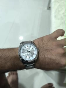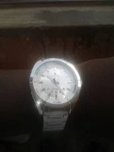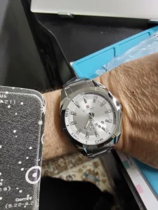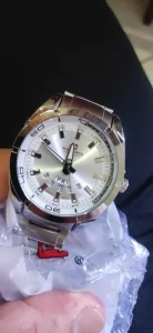 Bueno,bonito y muy barato. 7’24€ con monedas y cupones. Me gusta el dial en chapa con diametro en blanco. La disposición del dia de la semana y calendario me llamó la atención desde el principio. Sencillo pero elegante con buen tamaño y peso. Utilizable en cualquier ocasión. Ha llegado antes de la fecha dada. Perfecto 👌👍👍
