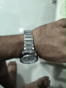 El reloj masculino de acero inoxidable no solo luce bien, sino que también ofrece una gran experiencia de uso. Su longitud total de 232 mm y ancho de banda de 22 mm permiten un ajuste ergonómico en la mayoría de muñecas. A pesar de su estructura robusta, el reloj tiene un peso equilibrado de 118 g, lo que lo hace cómodo para llevar durante todo el día sin causar fatiga.