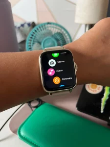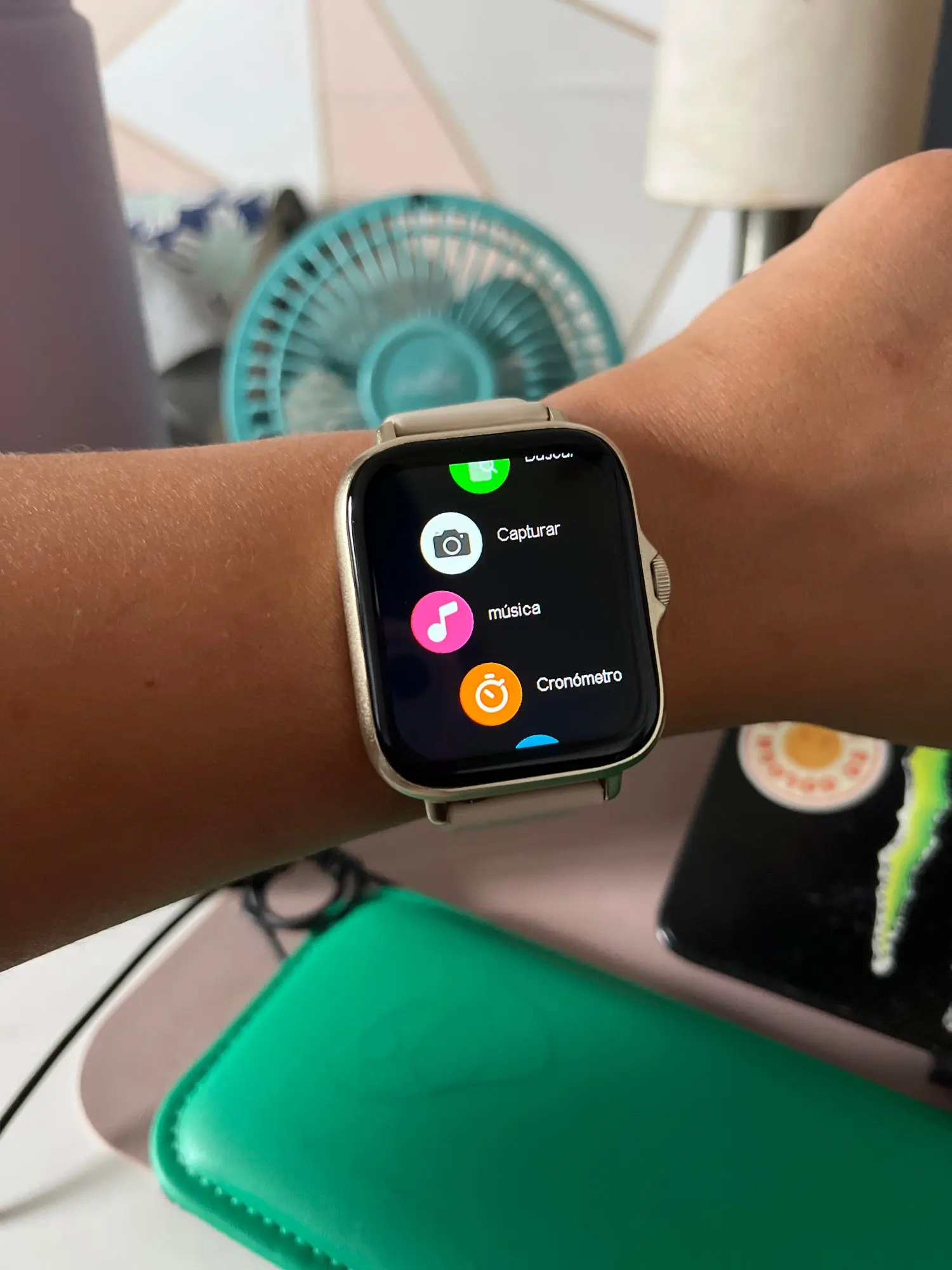 Es bonito, de buen tamaño y funciona bien, fácil de conectar a mi iPhone, si llegan las notificaciones . Solo que no puedes contestar los mensajes de whats o llamadas o al menos no he buscado como , tiene varias funciones para monitorear el ejercicio , poner alarma, etc, lo recomiendo