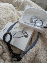 Te dan un pequeño anillo magnético para poner en tu teléfono y déjame decirte, este anillo es tan malditamente fuerte, que tendría que poner grasa codo para moverlo fuera del anillo cuando está conectado. Es un poco demasiado cerca de la cara, pero se puede ajustar más abajo por lo que no es tan malo. Tengo 5’11 y ancho, así que no quiero oírlos quejarse de lo cerca que está de la cara cuando probablemente Soy más alto y más gordo que la mayoría de ustedes y no tengo tanto peso. De un problema con él.
