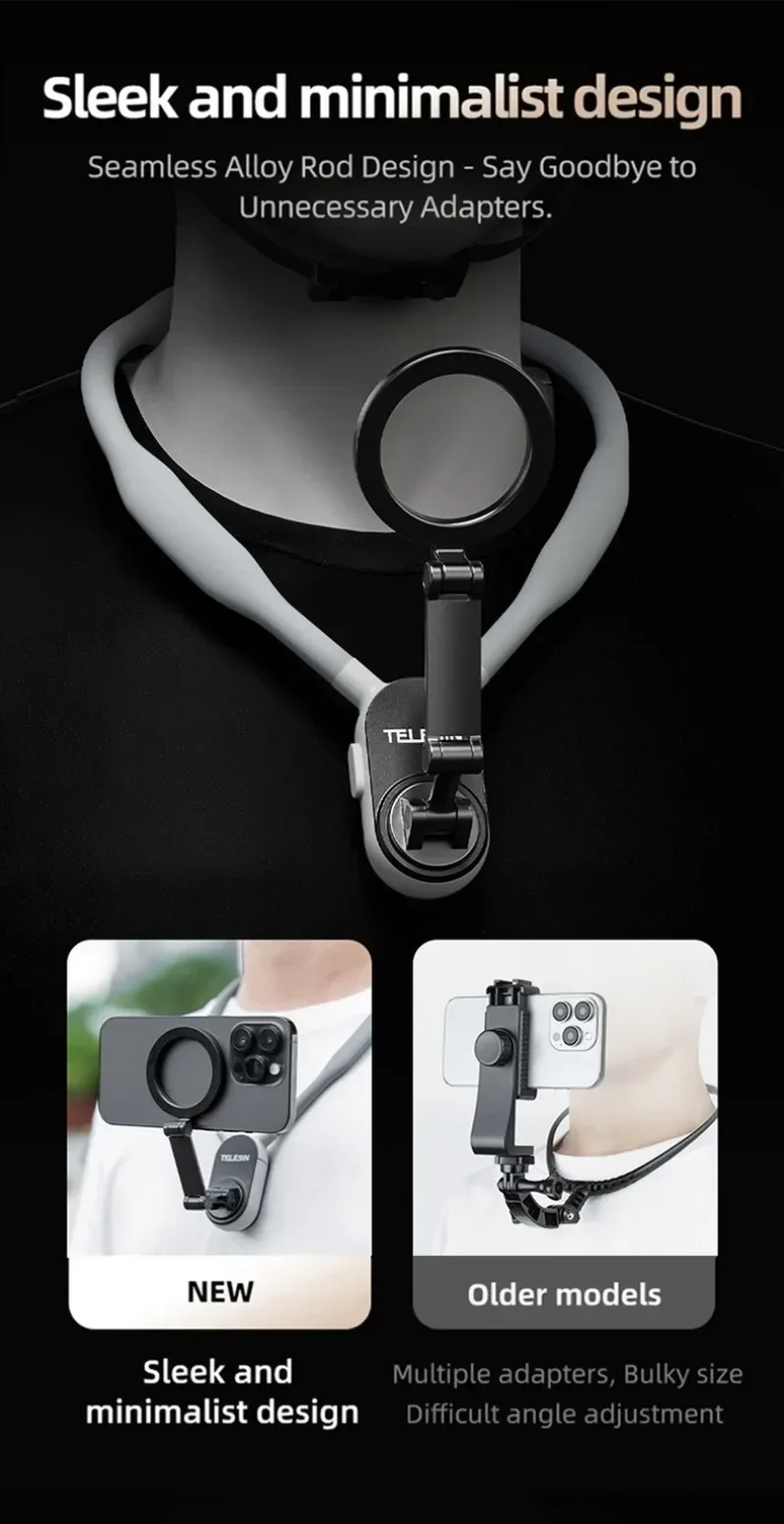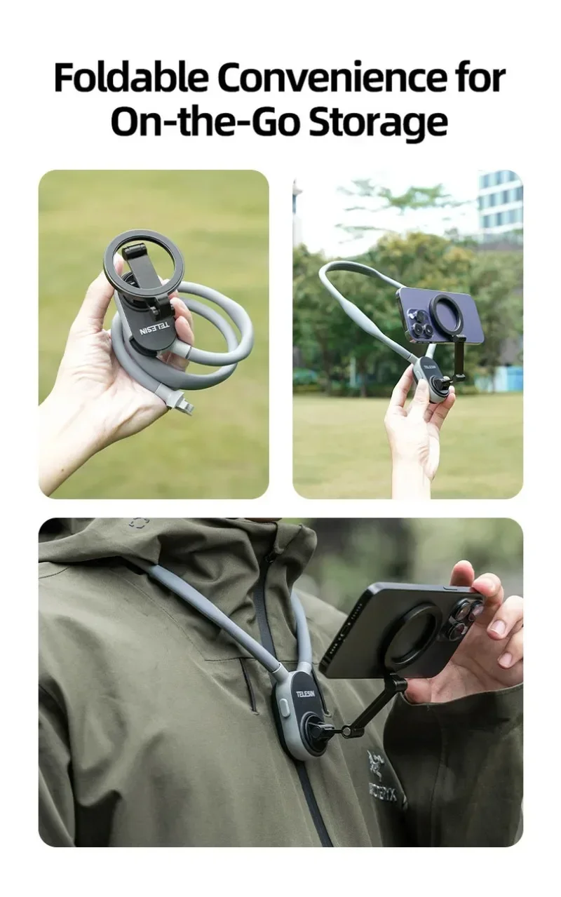 Soporte Magnético de Cuello para Vlogs y Selfies al Aire – Graba Manos Libres en Cualquier Lugar