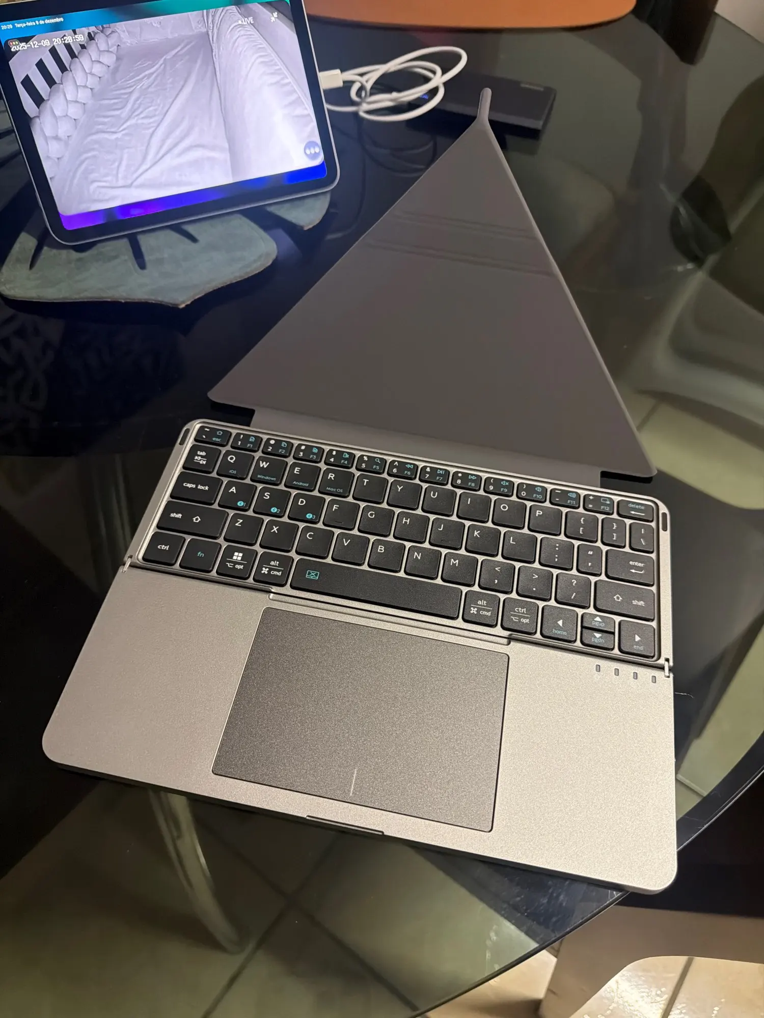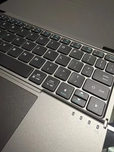 El teclado de tamaño mini es sorprendentemente cómodo para escribir y reconoce bien. Es bastante bueno. Incluso puedes colocar una tableta de 12 pulgadas sobre la cubierta del teclado y usarla cómodamente.