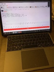Lo compré por comodidad y facilidad de almacenamiento, más que por su confort. Oh… ¿Es mejor de lo que pensaba? A medida que te desplazas hacia la derecha, el ancho se vuelve un poco estrecho, pero aún así es cómodo para sostener y escribir texto fácilmente. Si es necesario, puedes conectarlo a un televisor y usarlo.