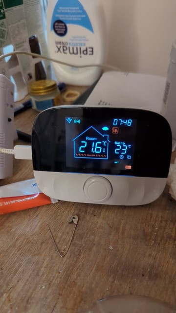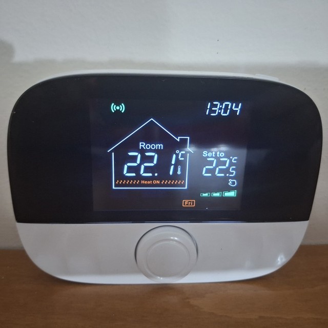 Hola. El termostato sorprendió por su mano de obra y diseño. Los ajustes son bastante intuitivos. Ofrece programas diarios establecidos por el fabricante, que pueden adaptarse a tu gusto. No permite, por ejemplo, programar sólo una temperatura para toda la semana durante el día y otra para la noche. La conexión entre el termostato + receptor se realizó sin problemas. ¡Excelente! La caldera se enciende y apaga, todo funciona. Lo peor es que aún no he podido emparejarlo con la aplicación mediante Wi-Fi. No entiendo para qué necesita bluetooth. ¡Aún! Todo está encendido, encuentra el dispositivo y listo. Quizás estoy haciendo algo mal. El paquete fue entregado en buenas condiciones, gracias al vendedor, recomiendo comprarlo.
